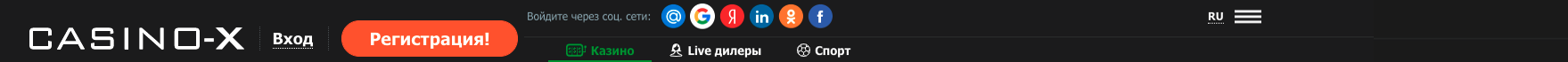 В шапке сайта Casino X традиционно для онлайн-казино закреплены кнопки быстрого доступа: